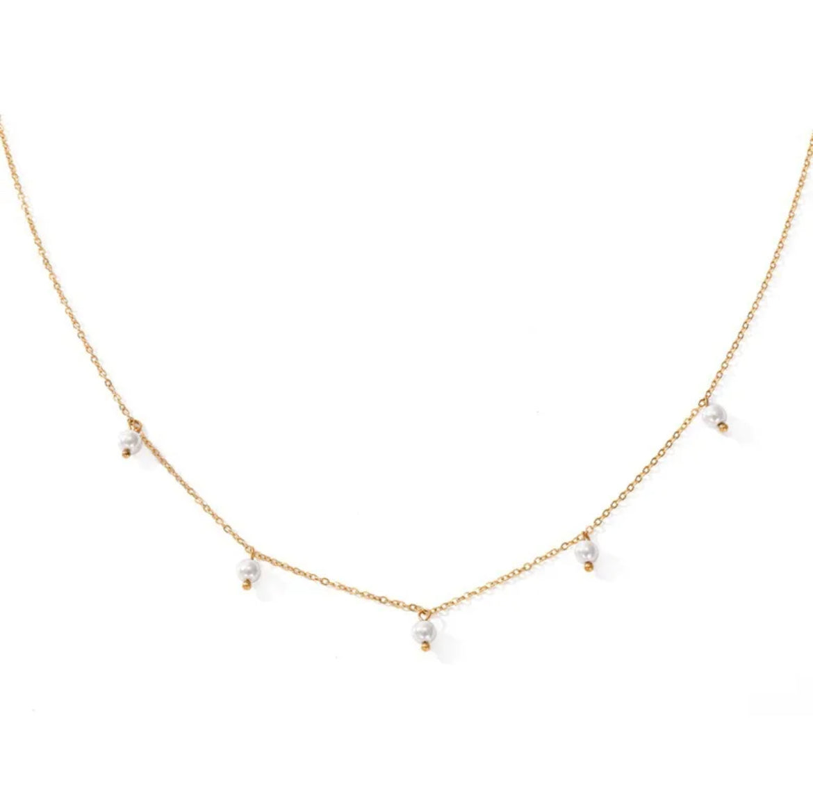 Subtle pearl chain that makes such a beautiful statement. Non toxic stainless steel base. Waterproof 18K gold plated PVD coating.
